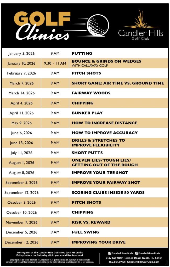 Get Golf Ready is offered several times throughout the year. Call 352-861-9712 for more information.